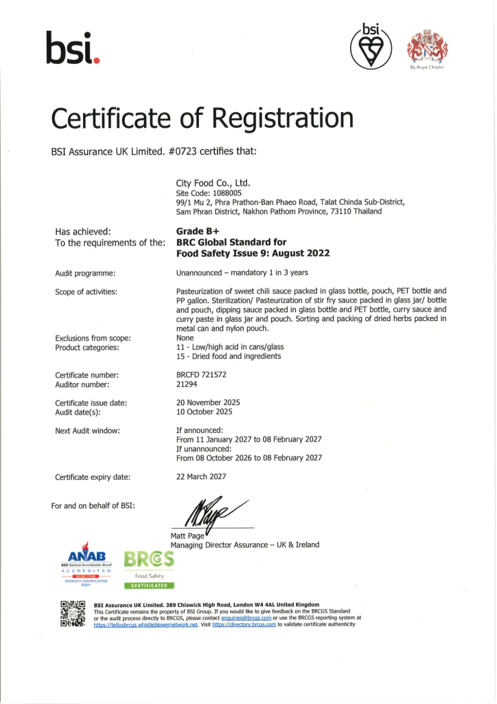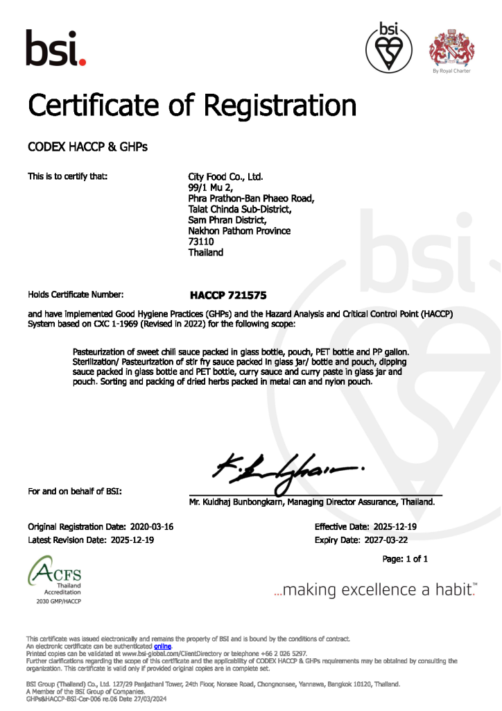 City Food Co., Ltd was established in 1988 at Bangkok. We started to producer and distribute the condiment such as Curry paste, Sweet chili, Sriracha sauce. Our company started export to USA and enlarge to Australia, Canada, Japan Europe,etc