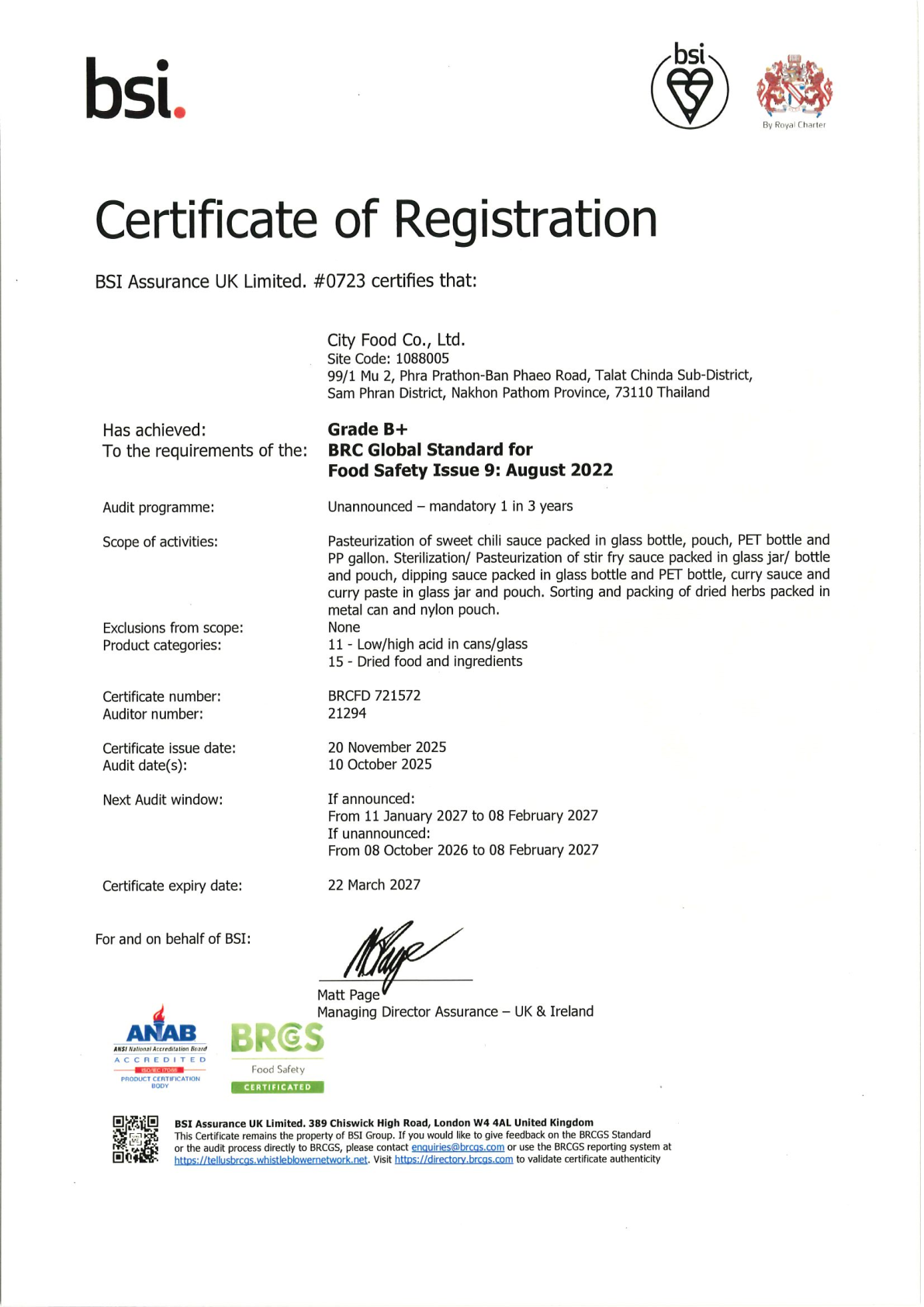 Certificate of Registration CODEX HACCP 721575